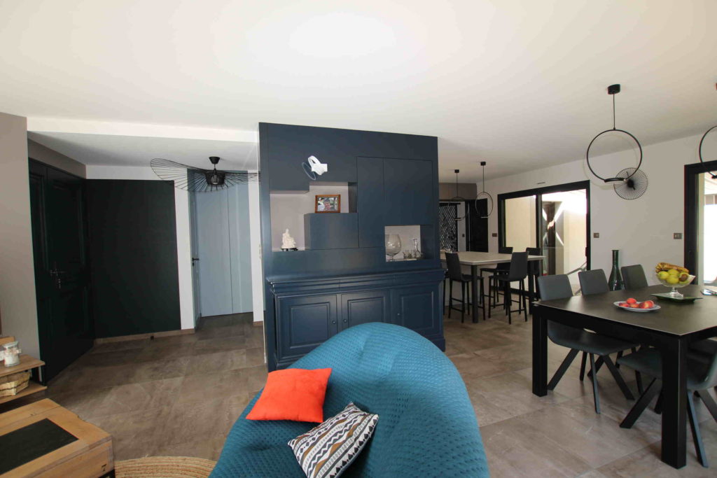 La pièce de vie de ce pavillon à été totalement repensée dans un style design et contemporain.